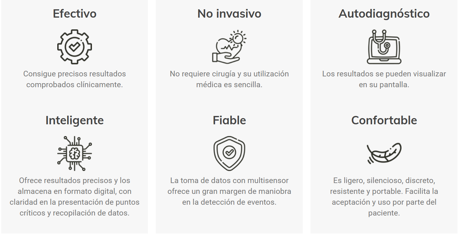 - Allows storing the night's information and automatically analyzes the evolution of OSAHS.